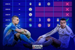 体育资讯4月17日讯 本轮欧冠八强战,皇马主场1-2、客场3-4被拜仁双杀淘汰出局,《转会市场》也列出了皇马近10年的欧冠战绩及被淘汰出局时的对手: