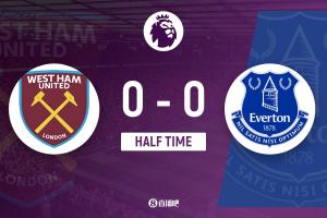 半场-西汉姆0-0平埃弗顿两队合计1射正 巴里远射造险奥布莱恩染黄