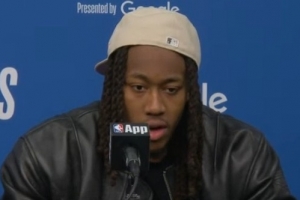道苏姆:就是保持侵略性。保持侵略性,保持连贯性,坚持我自己的技巧和习惯。我认为这非常重要。在场上和场下都有非常严格的习惯,我认为这对你在场上的表现有很大影响。然后就是进入心流状态。我总是告诉自己要进入心流状态。那是一个空间,在那里我只是相信上帝,相信能量,相信我的队友,我只是在场上打球。我只是顺其自然,我不知道会发生什么。就像我说的,上一场比赛我没进任何三分。那场比赛我主要是冲击篮筐。而这场比赛,我能够更多地站上罚球线,并且投进了一些三分。所以就是防守给什么我就拿什么,然后进入心流状态,在场上只是打球,努力打球,尽情竞争。