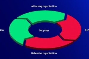 防守组织:“高位/中位/低位防守;队友之间、与球以及对手之间保持良好距离;明确逼抢/回防的时机。”